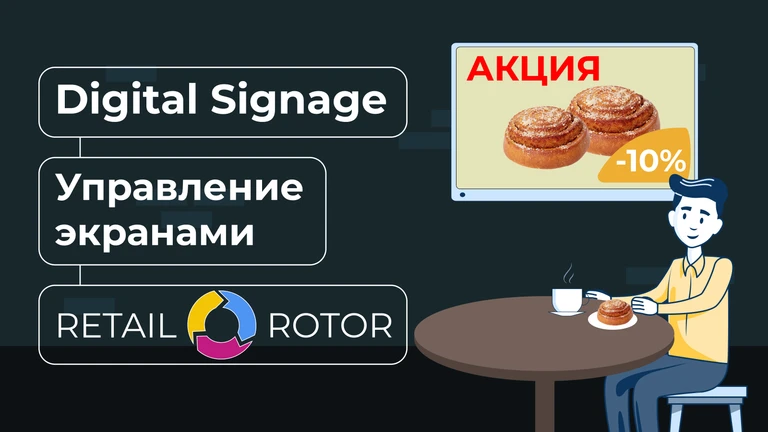 Чтобы попробовать Digital Signage в своей сети и размещать контент на любом количестве экранов, используйте RetailRotor!